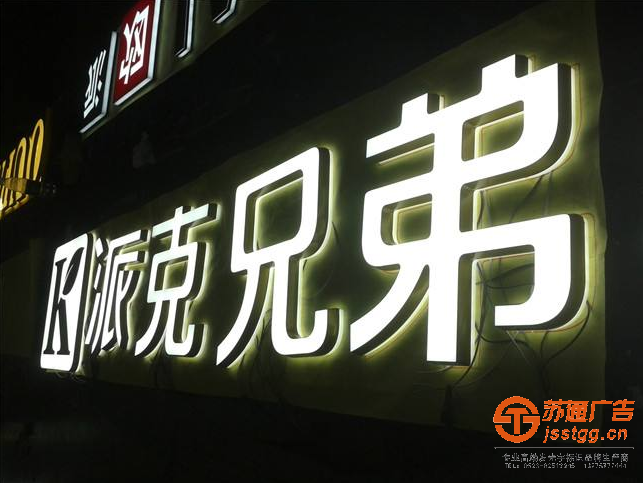 1、夜晚字體明亮醒目(安裝一種新型的超亮度發(fā)光源,使用壽命長(zhǎng),使它隨亞克力板顏色發(fā)出耀眼的亮光)。
